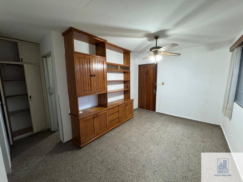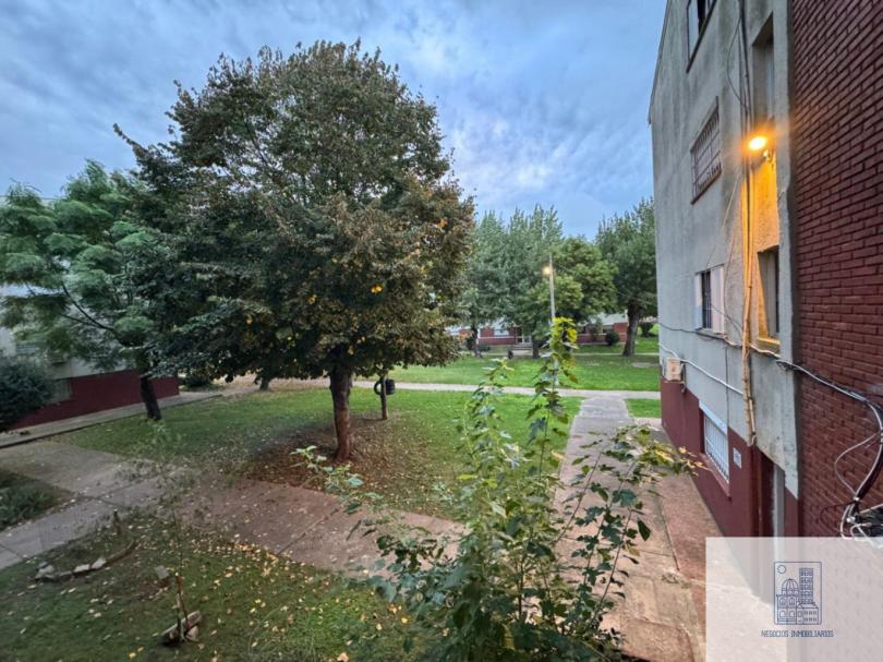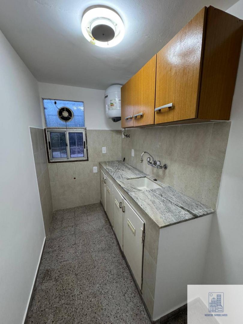 Apartamento al frente, primer piso por escalera, living comedor con aire acondicionado, 1 dormitorio con placard , vista hacia el parque del complejo, cocina definida con mesada de mármol, placares en bajo y alto mesada, ventana y extractor de aire, calefón, placard en pasillo de distribución, 1 baño completo con mampara, todos los ambientes con ventanas de aluminio, eléctrica nueva, espacio verde, estacionamiento con portón automático, reja perimetral en todo el perímetro.